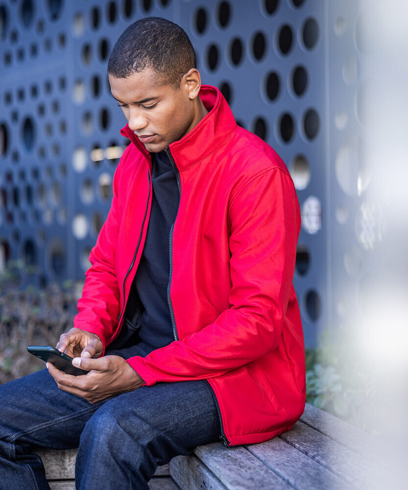Warm backed woven softshell. Printable softshell fabric. Wind resistant membrane fabric. Ideal for screen, transfer and vinyl printing. Durable water-repellent finish.