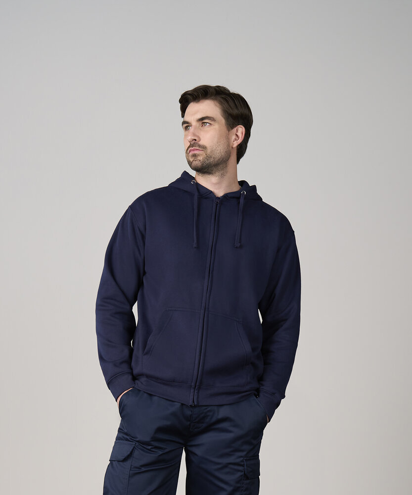 YKK zip and pull. Fully lined hood. Self-coloured adjustable drawcords. Brushed inner fleece. Ribbed cuff and hem. Inner fabric brushed fleece. Modern yet comfortable fit. Pouch pockets. Certified WRAP and SEDEX.