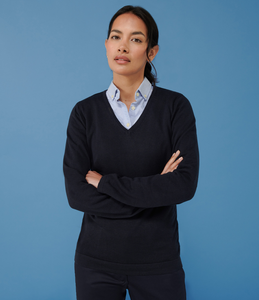 Henbury Henbury Ladies Lightweight Cotton Acrylic V Neck Sweater H721