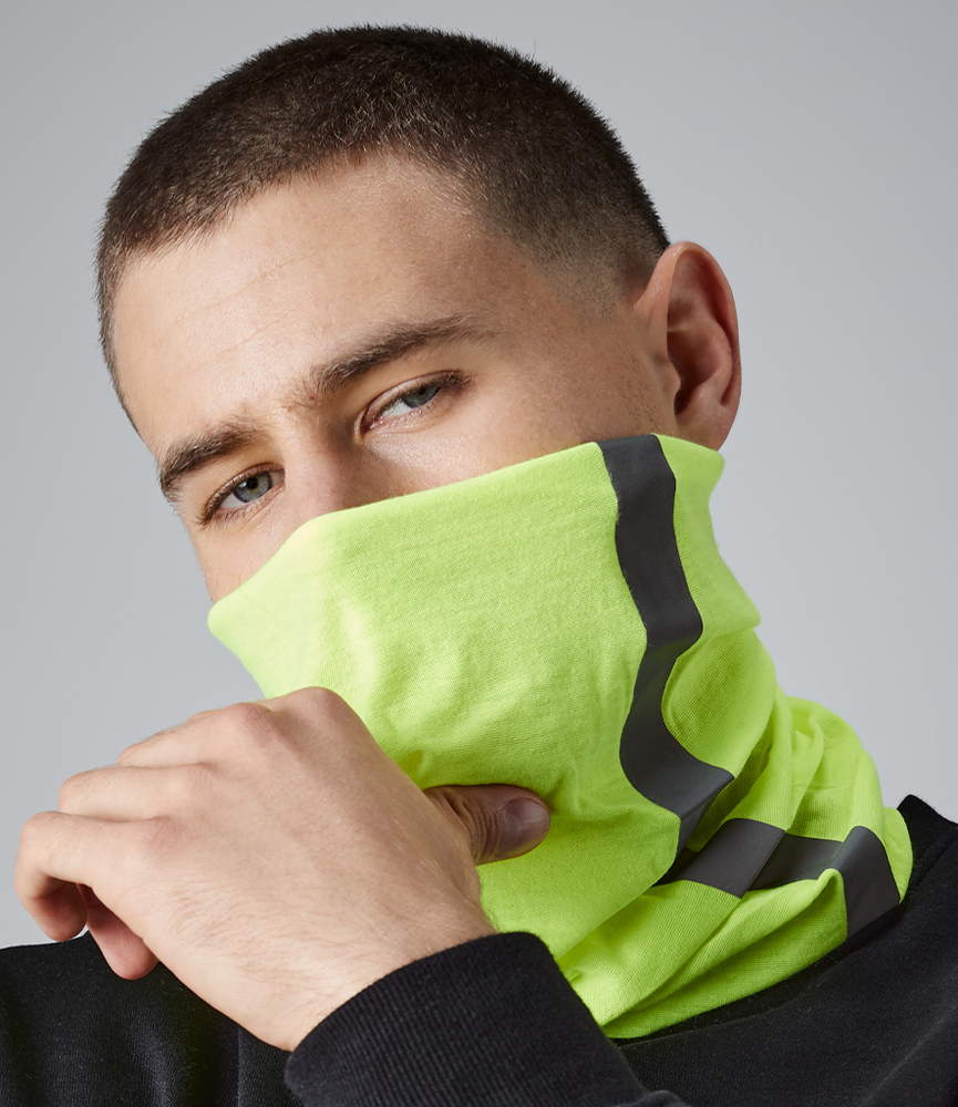 100% polyester microfibre. Breathable fabric. Seam free for comfort. Reflective stripes. Machine washable/non iron. Multi-purpose use. Disclaimer: Beechfield makes no warranties, either expressed or implied, that the Morfs® prevent infection or the transmission of viruses or disease.
