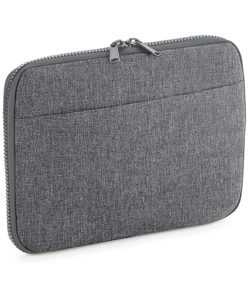 600D polyester. Soft touch lining. Slimline design. Padded main zip compartment. Padded internal iPad®/Tablet compartment compatible up to 11". Front slip pocket. Internal mesh zip pocket. Multiple internal pockets. Elasticated cable organiser. Can be decorated front and rear. Tear out label. Capacity 1.25 litres.