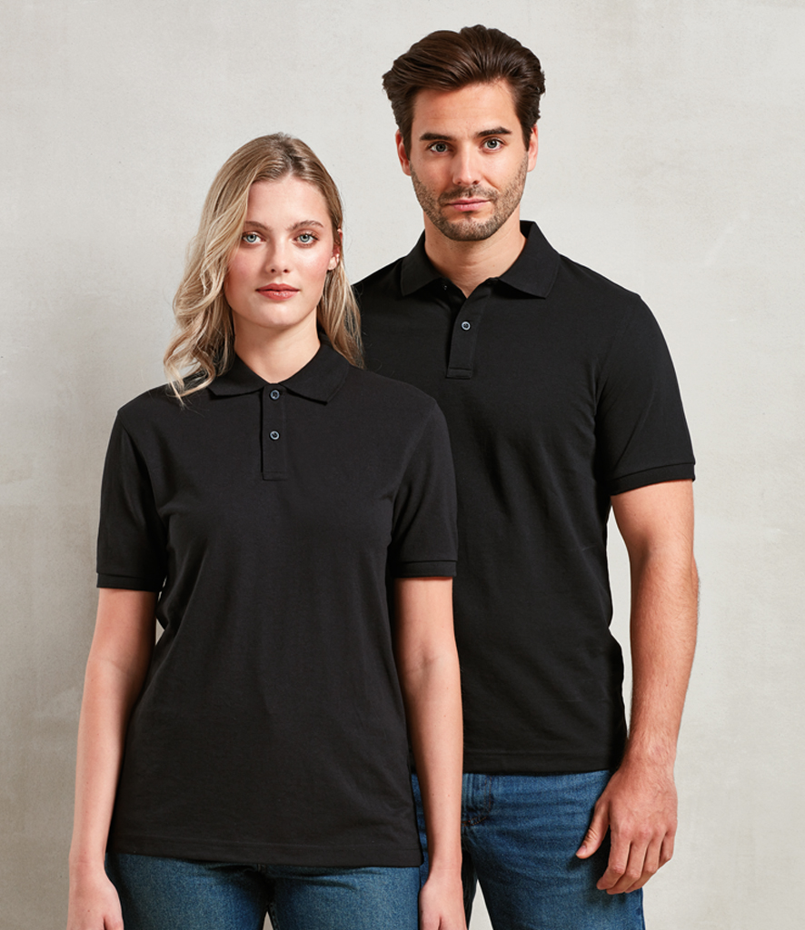 65% polyester/35% cotton. Antimicrobial fabric protection. Ribbed collar and cuffs. Longer length. Two self colour button placket. Twin needle hem. Machine washable at 60°C.