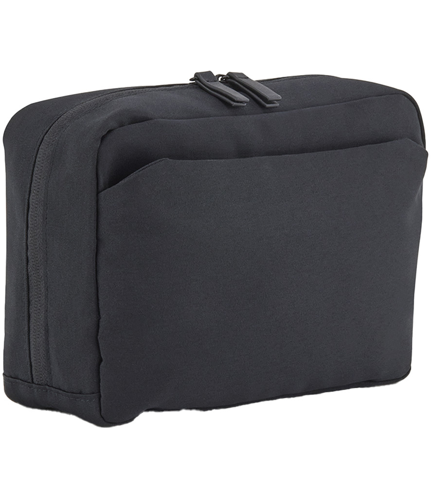 100% recycled 600D polyester. Water repellent fabric. Main zip compartment. Internal zip, mesh and slip pockets. Front zip pocket. Self colour PU zip pulls. Tear out label. Capacity 4 litres.