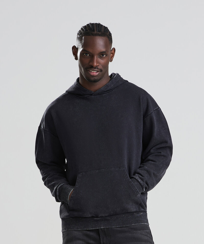 Oversized fit. Locker patch, for easy rebranding. Double-layer hood. Kangaroo pouch pocket. No drawcords. Ribbed cuffs and hem. French terry inner. Size label only.