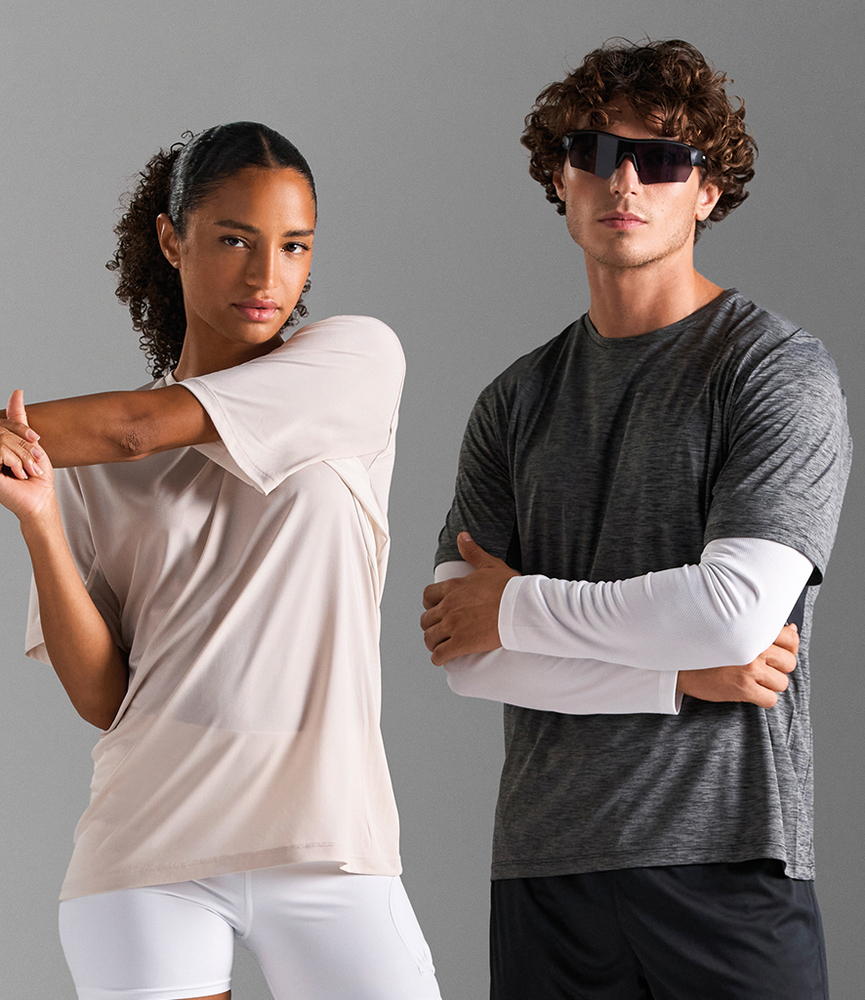 Textured breathable fabric.Contrast panels on underarms.Side seams.Twin needle sleeves and hem.Unbranded size label at neckline.