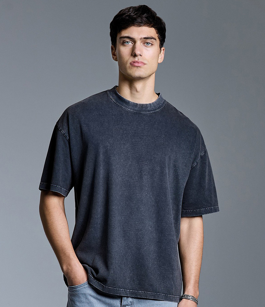 Washed finish.Oversized, boxy fit.Ribbed collar.Taped neck.Twin needle stitching.Unbranded size label.As a result of the dye process, each product is unique and shade differences are natural and expected.